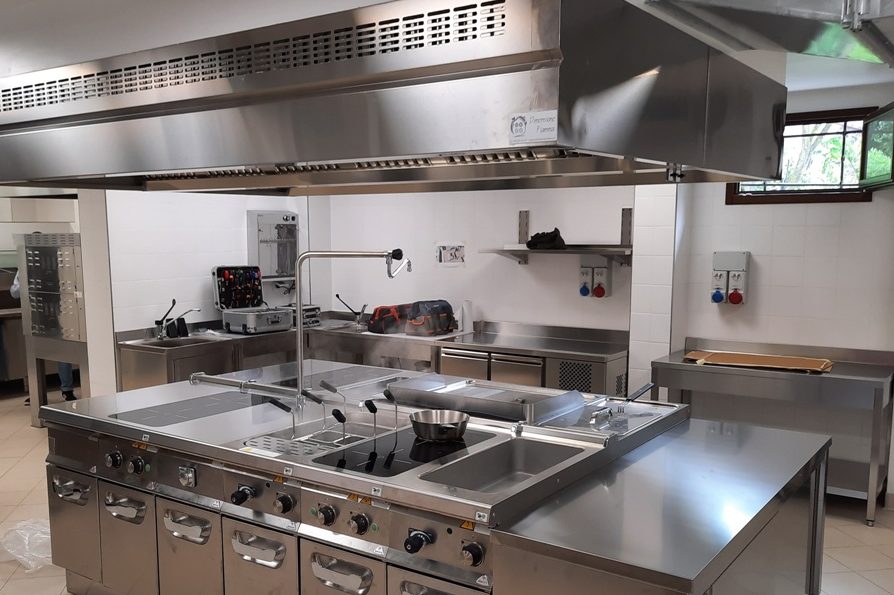 Collaudato impianto di aspirazione con cappa autocompensante su una scuola di cucina.